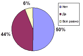 В оценке своей фигуры мнения респондентов распределились следующим образом: на первом месте (50%) пункт “нет”, 44% довольны своей фигурой и 6% отметили пункт “всё равно”