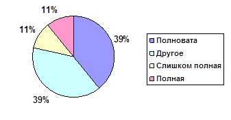 Для тех кто не доволен своей фигурой предлагалось выбрать почему. 39% респондентов отметили пункты “полновата” и “другое”, 11% выбрали “слишком полная” и “полная”.