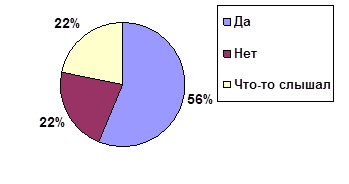 Знакомо ли понятие “анорексия” данной возрастной группе мы определили с помощью вопроса. Ответы распределились следующим образом: 56% знают данное понятие, 22% респондентов отметили пункты “нет” и “что-то слышал”.