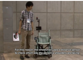 Роботизированное кресло несет на борту камеру и датчик определения расстояния, с помощью чего система отслеживает положение плеч человека, идущего рядом с креслом. За счет этих устройств кресло «понимает», в каком направлении двигается человек, соответственно повторяя его путь. Для сидящего в кресле такой способ перемещения получается более приятным, поскольку инвалидное кресло движется плавно, а не толкается вперед спутником.