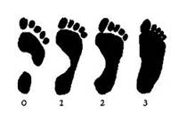 След ноги при различных степенях плоскостопия от нулевой до третьей.