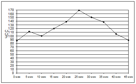 Пульсометрия - это метод определения соответствия физических нагрузок индивидуальным возможностям юношей. Он основывается на подсчёте частоты сердечных сокращений (ЧСС) в процессе занятий. Графическое изображение ЧСС называется физиологической кривой нагрузки. Физиологическую кривую нагрузки строят на основании пяти показателей пульса, который определяют у трёх-пяти учащихся. Кривая пульса отражает реакцию организма на нагрузку (упражнения) и позволяет нам проследить её в динамике.