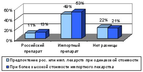 Диаграмма 2. Предпочтения при покупке отечественных и зарубежных медицинских препаратов