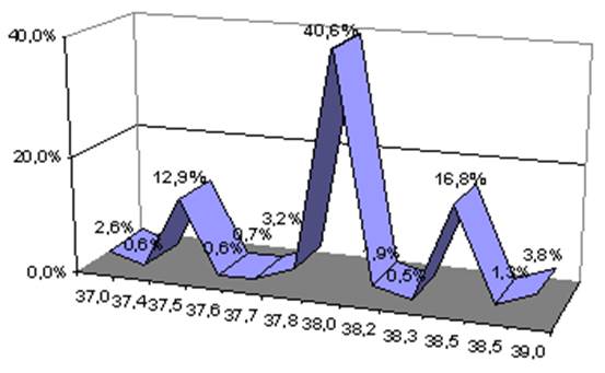 Что касается значения температуры, начиная с которого респонденты считают необходимым ее «сбивать», наиболее часто встречающийся ответ — 38.0° (диагр. 4).